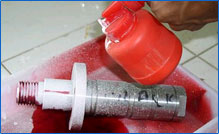 Liquid Penetrant Testing is a method that is used to reveal surface flaws by bleed out of a coloured or fluorescent dye from the flaws. Certified Penetrant Chemicals conforming to national & international specifications will be used for reliable testing. This test is performed by Level II qualified Engineer. |